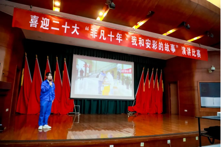 為迎接黨的二十大勝利召開,深入學(xué)習(xí)貫徹習(xí)近平新時(shí)代中國特色社會(huì)主義思想,號召廣大干部職工廣泛學(xué)習(xí)宣傳黨的十八大以來取得的恢弘成就、發(fā)生的偉大變革,9月23日下午,安彩高科組織開展喜迎二十大“非凡十年•我和安彩的故事”演講比賽。公司黨委書記、副總經(jīng)理陳志剛,紀(jì)委書記、工會(huì)主席呂建光,總會(huì)計(jì)師王珊珊出席活動(dòng)。