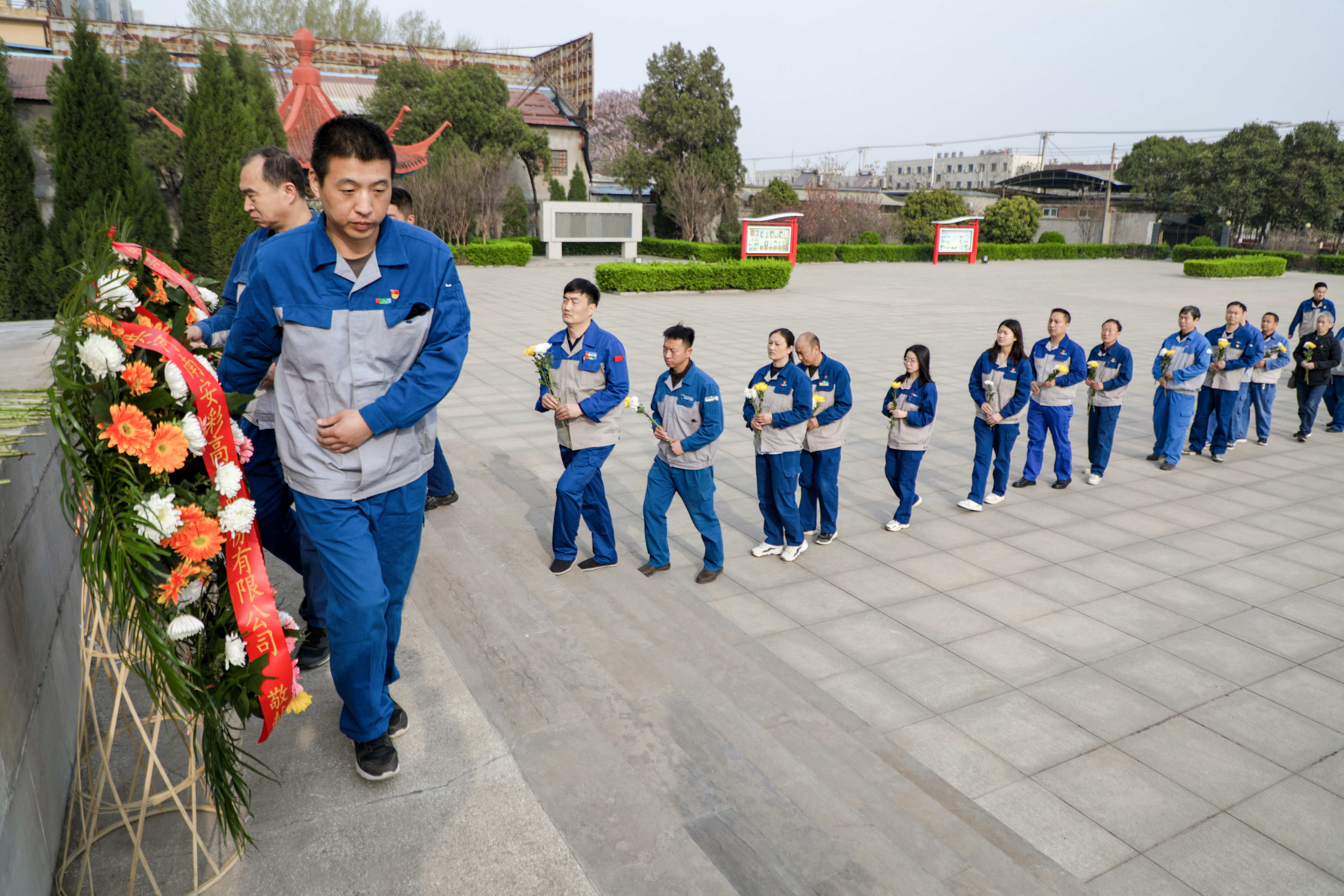 禮畢,全體人員依次前往紀念碑敬獻鮮花,向革命英烈致以崇高的敬意。